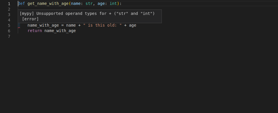 But now, imagine you are again in the middle of creating that function, but with type hints.